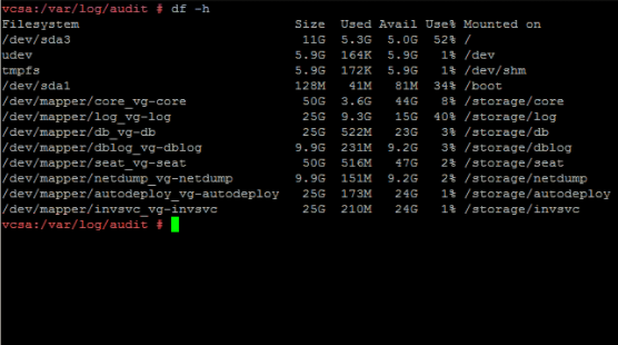If you were able to update the root password on your VCSA before /dev/sda3 ran completely out of space, then cron will run and the problem will take care of itself. The cron job runs every 15 minutes. Allowing time for the compression to take place, your /var/log/audit will look like the above screenshot in about 30 minutes.